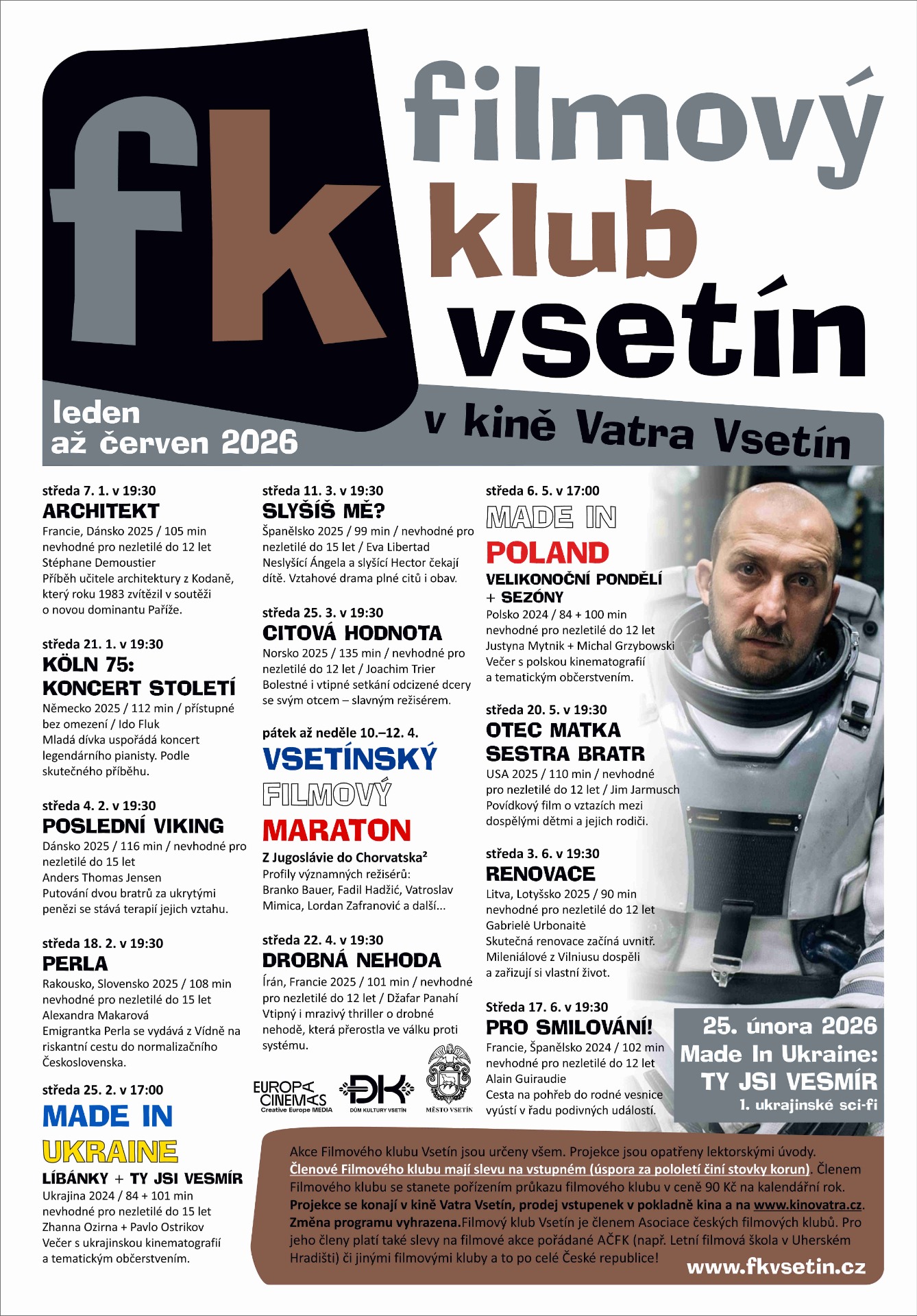 Již víme, které filmy chceme zařadit do programu Vsetínského filmového maratonu (10. - 12. dubna 2026) a snažíme se získat povolení k projekcím.